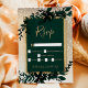 A modern, chic and elegant yellow gold typography Floral green Christmas winter rsvp wedding with hand painted green watercolor leaf foliage on an elegant gold background with white snow and snowflakes..