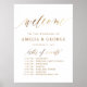 This is a beautiful portrait poster welcome order of events wedding sign featuring script text.