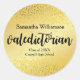 Celebrate your grad's giant achievement with this gold graduation sticker. It also has confetti as an added decorative feature. Valedictorian is written a large formal font in the center of the gold sticker. The graduate's name is above it. Class of 2018 and the High School is below.