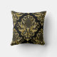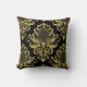 Gold Victorian Damask Pattern on Black Throw Pillow