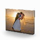A pretty gold vine and leaf vector frames your own photograph in beautiful style on this photo block cube. The gold color is complementary to many wedding or anniversary photographs, adding a delicate touch of elegance while not detracting from your subject. Beautiful!