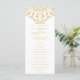 This elegant, vintage wedding program features a delicate gold damask embellishment on a white background. Perfect for a vintage glam or art deco themed wedding.