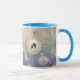 This coffee mug features beautiful golden dandelion seed pods with a magical, starry, faux watercolor effect. Your monogram initial appears in black script, encircled in gold. The mug shown featuers a turquoie blue handle and inside, but you can choose other colors, plain, frosted, and even a stein version of this design. The beautiful dandlions are set against a subtle dreamy multicolor background,