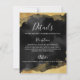 The design features a sleek black background framed by faux gold watercolor or alcohol ink accents at the top and bottom, creating a luxurious and modern aesthetic. The front offers room to include key details such as event times, locations, dress codes, or transportation arrangements, while the back provides additional space for accommodations, RSVP instructions, or personal notes. A subtle white Star of David on the back adds a meaningful and elegant finishing touch.