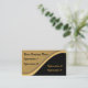Professional custom, unique and classy business cards with gold swirling 3d look wave design with black stylish text and black background with gold text. Two sided with room to add more text.