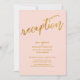 Gold Waves & Handwriting Blush Wedding Reception Invitation