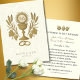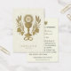 A sacred and elegant Catholic wedding prayer card featuring the Holy Eucharist symbolized by the radiant IHS chalice, with golden wheat, grapes, and wedding rings below—a rich reflection of Christ’s presence at the heart of the Sacrament of Holy Matrimony. Personalized with the bride and groom’s names and wedding date, and paired with a reverent nuptial prayer on the reverse. A timeless keepsake for guests to remember your holy union.