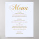 Gold wedding dinner menu. Blue elegant simple Poster