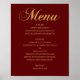 Gold wedding dinner menu. Maroon elegant simple Poster