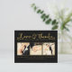 Gorgeous faux gold foil typography on the front of this designer postcard which you can upload into with 3 of your own engagement/wedding photo portraits. Easily and quickly personalize this designer professionally printed thank you postcard here and now by just typing over the example text and adding your own photographs. Elegant, chic, simple and classy gold script/cursive typograph.