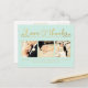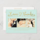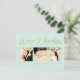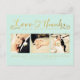 Gorgeous faux gold foil typography on the front of this mint designer postcard which you can upload into with 3 of your own engagement/wedding photo portraits. Easily and quickly personalize this designer professionally printed thank you postcard here and now by just typing over the example text and adding your own photographs. Elegant, chic, simple and classy gold script/cursive typograph.
