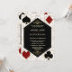 Casino Night, Art Deco Gatsby 20s themed card design. It features vintage art deco style, a Roaring 1920's old Hollywood faux gold frame, fleur-de-lis, playing cards suits (simulating playing cards), on gold white Art Deco pattern background. Special wording are used as in poker game. On the back faux gold Art Deco pattern, QR code and initials. Use Personalize tool to add your information. For more, visit please, my Casino Poker Wedding Collection.