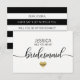 Unique modern and trendy wedding WILL YOU BE MY BRIDESMAID? cards. White and black background (can be changed to any color) with stripes and black script calligraphy. Small heart in faux gold glitter . ADD YOUR MESSAGE / TEXT back of card. Editable templates so you can add your own text. Perfect for any wedding theme or time of year. See collection.