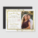 These beautiful gold and white magnetic cards are the perfect way to let your family and friends know to save the date for your upcoming wedding. The elegant design features your photo inside of a golden faux foil frame with delicate curls and swirls in the corners. There is fancy script lettering and a customizable calendar showing your wedding month with a heart around your special day. Convenient and practical, this card is sure to please.