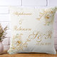 Gold White Floral Watercolor Monogram Wedding Throw Pillow