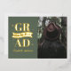 Gold and white graduation with class year inside a banner ribbon and decorative star accent. Photo template via Pixabay licensed under CC0 and must be replaced with your own photo