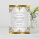 Gold White Pearl Damask Cross Baptism Christening Invitation