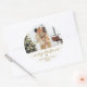 Elegant Modern Script Gold and White "Merry Christmas" Calligraphy Script Family Photo Christmas Holiday Large Round Sticker. Great for Mailing Accessories Envelope Seals and Gift Stickers.