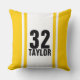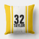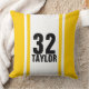 Simple and classic Gold & White Striped Monogramed and Numbered Sports Jersey Throw Pillow. Great for Racers, Basketball Players, Baseball Players, Hockey Players, Football Players or any other athlete. Customize with your number and name or your favorite Sports Player's name and number.