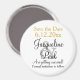 Save the Date and date of wedding is written in gold color typography against white background. Insert Bride and Groom's First Names in black script. Designs by TamiraZDesigns.