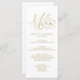 This elegant menu features whimsical flourish gold typography on a white background. You can add your details in the customize menu. This menu is part of a beautiful matching wedding suite that can be fully personalized.