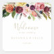 This gold wild feather boho tropical wedding welcome square sticker is perfect for a rustic wedding. The design features hand-painted brown wild feathers, boho yellow, white, purple, pink, blush, burgundy flowers and blue berries neatly arranged into beautiful bouquets.