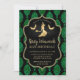 Elegant green and black gothic halloween damask pattern with gold witch and bats clipart and vintage frame design