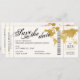 Gold World Map Boarding Pass Ticket Save the Date Announcement