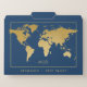 Elegant and rofessional gold world map and custom monogram on a set of classy file folders with a navy blue background that can be edited to match your office decor or filing color scheme.