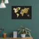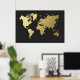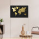 Gold World Map on Black Chevron Poster