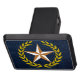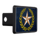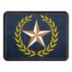 Gold wreath with Texas copper star on dark denim blue jean background. Official looking from a distance.