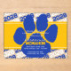 Unique Trendy Luxury Graduation Pawprint Elegant Frosted Acrylic Invitations in Gold Yellow & Blue. Part of our repeating class year collection.