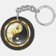 Jewelry, gold and black yin yang symbol on a black background. Gold yin yang.
