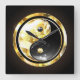 Jewelry, gold and black yin yang symbol on a black background. Gold yin yang.