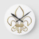 Golden "3-D" Fleur-de-lis Round Clock
