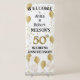 Golden 50th Anniversary Reception Retractable Banner for a special Wedding Anniversary Celebration. Designed with White and Gold colored Balloons, and Gold confetti highlights, on a white background for an elegant look. The text includes: Welcome To, The Couple's Names, 50th Wedding Anniversary Party. To personalize, simply insert your details into our easy template, replacing the sample text.
