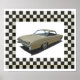 Digitally enhanced image of a gold colored 1961 Oldsmobile Super 88 2 door hardtop within a dimensional black and white checkered frame.