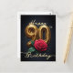 Celebrate a magnificent milestone with this stunning 90th Birthday postcard. Golden "90" numerals, intricately etched with swirling patterns, gleam at the center. Gracefully nestled below, a vibrant red rose, with petals in perfect bloom, symbolizes timeless beauty. A scattering of delicate golden glitter adds festive magic, while the elegant "Happy 90th Birthday" script flows with sophisticated charm. Remember, the text is completely customizable, allowing you to personalize this beautiful tribute.