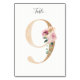 Golden number with soft pastel floral embelishment table number card. Personalize text font style, size, and color.