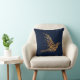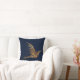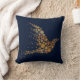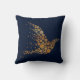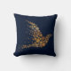 Elegant designer accent throw pillow done in a midnight blue, with lovely graphics of a golden abstract bird made up of dots. Customize this lovely pillow with your own text or leave as is for a great room accent or gift idea.