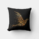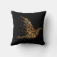 Elegant designer accent throw pillow done in a jet black, with lovely graphics of a golden abstract bird made up of dots. Customize this lovely pillow with your own text or leave as is for a great room accent or gift idea.