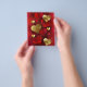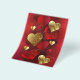 Vertical composition of red and gold, textured valentines made of foil and brocade on red background. Valentines day decorations.