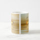Coffee mug with my original design of an all-golden and yellow scene with golden hearts floating on water. Customizable text says "50 Years".