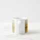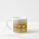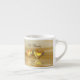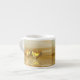 Espresso cup with my original gold and yellow image of two golden hearts floating on water. Customizable text says "50 Years".