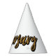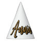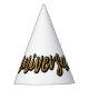 These party hats feature the words "Anniversary" in a unique print font with gold letters black outline. All paper hats have an attached elastic string printed in full vibrant colors made in the USA has a Minimum of 12 order requirement.
