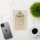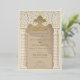 This invitation is a luxurious statement piece, perfect for couples seeking to blend traditional Islamic design with modern elegance. Its golden foil accents illuminate the intricate lace motif, creating a striking contrast against the taupe and beige background. The architectural elements echo the grandeur of a mosque’s entrance, with chevron-patterned columns framing the card and a beautifully stylized arch crowning the text. The use of cream, ecru, and gold hues exudes opulence, while the fine detail in the artwork reflects a deep respect for cultural artistry. This invitation promises a celebration where timeless beauty and contemporary style converge to create an unforgettable experience.