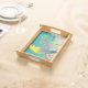 This is a well made, sturdy wooden tray with a flawless black finish and lovely map on the tray surface. It is both vintage & modern at the same time. Looks exactly like the photo; does not disappoint. So nice to find something of quality individually made and not the mass-produced 'shabby chic' merchandise seen in stores. I am so pleased to be able to give this to my college-age niece for her birthday. This can be used as a tray to hold jewelry or toiletries, or hung on the wall as art. The map surface is sealed (it is slightly shiny) so would be moisture resistant. It is well worth the asking price but I was able to apply a sale code as well. Very happy with my purchase. Map is crisp & clear and sealed with a water-resitant finish.