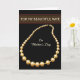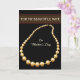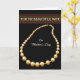 Designed with a rich, dark background, the card centers on a strand of golden round beads that curve into a gentle U-shape, catching light in tiny highlights like a quiet shared glance ❤️. Each bead looks smooth and glossy, with small reflections that make the necklace feel close and cherished, like something given between dear friends. Near the top, a wide rectangular banner in earthy brown with a faint reddish outline holds the main message in cream-colored serif lettering. The larger text sits neatly centered inside that banner, standing out strongly against the dark space around it. Below the necklace, a second line of text appears in a flowing cursive-style font in a similar soft cream tone, placed low and slightly curved to echo the necklace’s shape 🌼. The mix of formal top lettering and softer lower writing adds a tender, romantic contrast without needing extra decoration. The black background looks velvety, making the warm gold beads and pale text feel even more luminous. The final detail is the subtle, varied light spots on each bead, from bright pinpoints along the top edges to softer glows underneath.