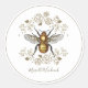 Golden Bee And Rose Floral Laurel Classic Round Sticker