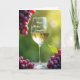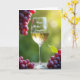 This card features a slender stemmed glass glowing with a golden drink, set on a lightly textured wooden surface that feels like a quiet outdoor table for two ❤️. Around it sit clusters of plump purplish-red fruit, arranged like a small shared treat that suggests closeness and easy conversation. One bunch hangs from the upper left in a soft blur, adding depth as if someone just reached in and gently set it there. Another cluster rests in the lower right foreground beside a single crisp green leaf, giving the scene a fresh, affectionate touch 🌼. Behind everything, sunlit green foliage fades into a smooth, out-of-focus backdrop that keeps attention on the glass and fruit. Light falls softly across the scene, catching the rim and bowl of the glass and making the drink look bright and inviting. The message “Happy Mother’s Day Daughter!” appears as clear lettering on the front of the glass, standing out against the warm liquid. The background stays a wash of emerald greens with circular highlights, while the fruit’s rounded skins show subtle shine and deep red-purple tones.